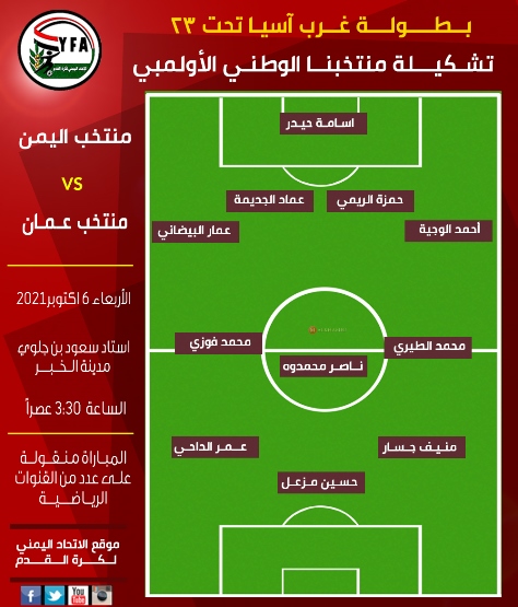 أعلن الجهاز الفني لمنتخبنا الوطني الأولمبي، بقيادة الكابتن أمين السنيني، صباح اليوم، عن التشكيل الأساس للمنتخب الذي سيلعب أمام منتخب سلطنة عمان، عند الساعة 3 والنصف من عصر اليوم، على استاد سعود بن جلوي بمدينة الخبر.
