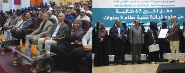 لافتاً إلى أن المؤسسة تسعى لتقديم مزيد من الخدمات الصحية والتدخلات في القطاع الصحي بمحافظة حضرموت خلال المدة القادمة، شاكراً وزارة الصحة العامة والسكان، والسلطة المحلية بمحافظة حضرموت ومكتب وزارة الصحة العامة والسكان ومعهد أمين ناشر للعلوم الصحية على تعاونهم وتقديمهم للتسهيلات اللازمة، راجياً للخريجات التوفيق والنجاح.