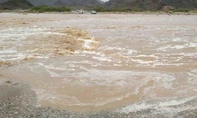 توقف الخط الدولي الرابط بين المكلا وعدن عن الحركة صباح يوم الجمعة بسبب تدفق السيول من الأودية و هطول الأمطار .