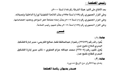 أصدر رئيس مصلحة حفر السواحل قرار جديد رقم (2) لسنة 2023 قضت المادة