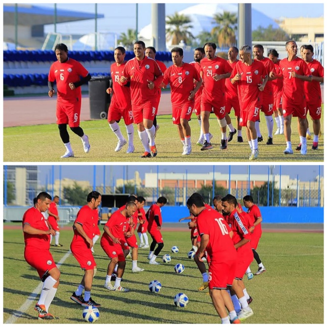اجرى منتخبنا الوطني لكرة القدم اول حصة تدريبية له على ملعب جابر الاحمد الدولي وتحديدا في واحد من ملاعب التدريب التابعة للملعب وهي عديدة ويقع الملعب بمنطقة العرضية بدولة الكويت الشقيقة