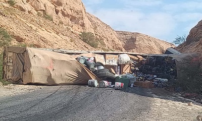 تسبب حادث انقلاب قاطرة في عقبة وادي العين بمحافظة حضرموت، اليوم الأحد، في انقطاع الطريق بشكل كامل أمام حركة المركبات.