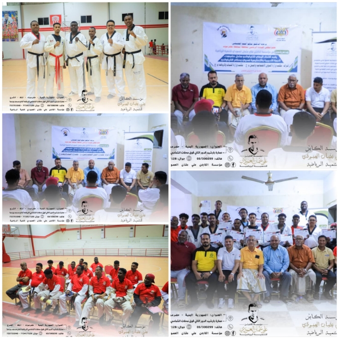 اختُتِمت مساء اليوم الخميس الموافق ٥ فبراير الدورة التدريبية الأولى لتأهيل مدربي وحكام التايكواندو في محافظة حضرموت بمدينة المكلا، والتي أُقيمت برعاية كريمة من الدكتور سالم أحمد الخنبشي، عضو مجلس القيادة الرئاسي ومحافظ محافظة حضرموت.