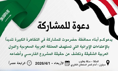 وأشارت إلى أن الاحتشاد المرتقب يأتي انطلاقًا من عمق الروابط الأخوية والتاريخية التي تجمع حضرموت بالمملكة العربية السعودية، ويجسد رسالة تضامن شعبي ورسمي تؤكد وحدة الموقف ورفض كل ما من شأنه زعزعة الأمن والاستقرار في المنطقة.
