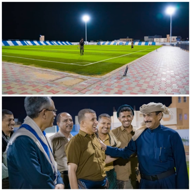 في أجواء مفعمة بالفرح والحماس ، عكست تطلعات شريحة الشباب والرياضيين ، دشن محافظ محافظة شبوة ، الشيخ عوض محمد بن الوزير العولقي ، مساء اليوم الثلاثاء الموافق 12 شوال 1447هـ ، مشروع إنارة وتأهيل ملعب الفقيد ناصر الخليفي بمدينة عتق ، ضمن حزمة من مشروعات تطوير البنية التحتية للقطاع الرياضي ، بتكلفة إجمالية بلغت 178 ألف دولار، بتمويل محلي وتنفيذ مؤسسة الركن اليماني .