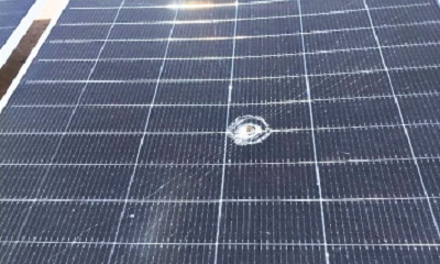 نتيجة الرصاص الراجع، الأمر الذي أدى إلى تلف عدد من الألواح الشمسية.