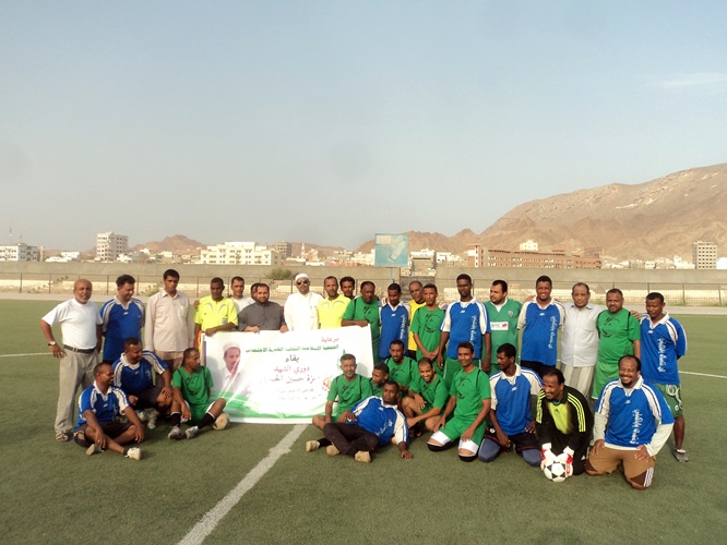 قبل بدء المباراة ترحم الجميع بقراءة الفاتحة على روح المغفور له باذن الله تعالى جوهرة حضرموت الكروية