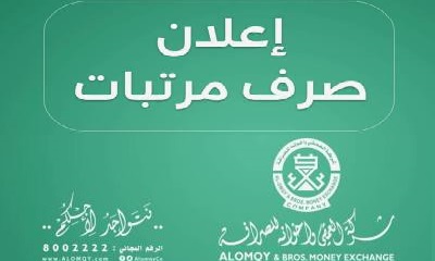أعلنت شركة العمقي للصرافة على مستوى الساحل والوادي عن صرف مرتبات المتعاقدين في القطاع التربوي لشهر مارس بمحافظة حضرموت .