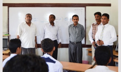 استمراراً للنزولات الميدانية والمتابعات المستمرة لتفقد الاختبارات الشهرية والحصص الدراسية بمدارس مديريات الساحل كافة.. تفقد وكيل وزارة التربية والتعليم مدير مكتب وزارة التربية والتعليم بالمحافظة الاستاذ جمال سالم عبدون سير الاختبارات الشهرية في يومها الثاني من خلال اطلاعه بمعية مدير ادارة التربية والتعليم بمديرية مدينة المكلا عبود عوض بن عبود الشيخ في قاعات الدرس لاختبارات مادة التربية الاسلامية بمجمع الزهراء التعليمي للبنات بديس المكلا .