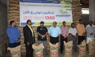 مدير إدارة تنمية المجتمع بالمؤسسة صباح اليوم بتدشين توزيع(1350)كيس أرز