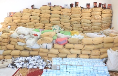 وأوضح مصدر عسكري لوكالة الأنباء اليمنية (سبأ) أنه وخلال المداهمة تم القبض على عنصرين وضبط ثمانية أطنان من الحشيش وحبوب الكبتاجون والترامادول ، إضافة إلى كمية من متفجرات (تي إن تي) والديناميت وعجينة متفجرة ، وأسلحة نوعية ومبالغ مالية مزورة فئة 5 آلاف ريال يمني صادرة من قبل مليشيا الحوثي الانقلابية ، مشيرا الى أن التحقيقات جارية مع المقبوض عليهما.