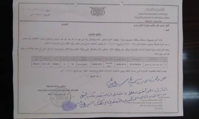 تنازل المدير العام السابق لمكتب وزارة النقل بساحل حضرموت الاخ/محمدعمر