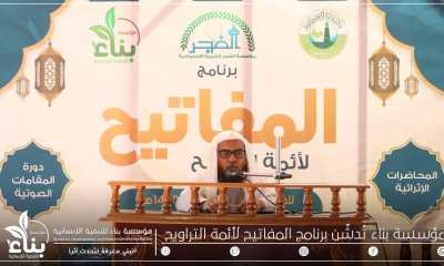 اختتمت بمسجد معاذ بن جبل بمدينة المكلا فعاليات برنامج المفاتيح لأئمة التراويح الذي نظمته مؤسسة بناء للتنمية الإنسانية