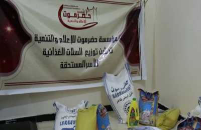دشنت مؤسسة حضرموت للإعلام والتنمية حملة توزيع السلات الغذائية للأسر
