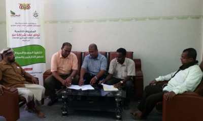 حضر مراسيم التوقيع الاستاذ صالح كرامه علوا رئيس لجنه الخدمات بالمجلس المحلي والاستاذ محمد باشعيب مدير مكتب الشوون الاجتماعيه والعمل بالمديريه
