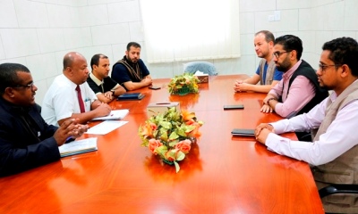 رافقهم في الزيارة واللقاء مدير العلاقات العامة بمؤسسة استجابة للأعمال الانسانية والاغاثية / صالح عوض باقلاقل .