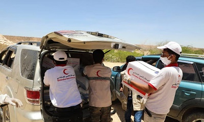 نهيان لأهالي محافظة حضرموت، تواصل فرق الهلال الأحمر الإماراتي توزيع