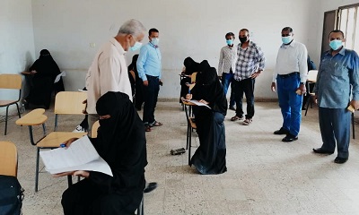 حيث طاف الوفد بالقاعات الدراسية للامتحانات يرافقهم عميد المعهد التقني التجاري بفوة الأستاذ/ ابوبكر العبدلي وعميد المعهد التقني الصناعي بشارع البلده المهندس/ عوض وحدين ونواب المعهدين .