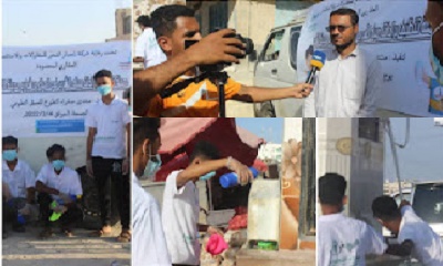شركة إعمار الشحر العقارية بالتعاون مع سفراء التطوع تنفذ حملة تنظيف وتعقيم برادات مياه الشرب بالشحر