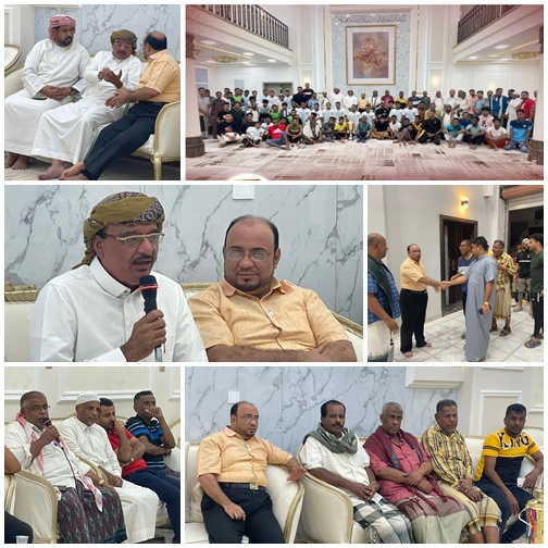 بحضور الوكيل المساعد لشؤون مديريات الوادي والصحراء الاستاذ عبدالهادي عبداللاه التميمي ومدير عام مكتب الشباب والرياضة الأستاذ رياض الجهوري إستضاف رئيس مجلس إدارة مجموعة الماهر التجارية عبدالله أبوبكر العدني الجنيد ببيته مساء الأمس الجمعة 3 يونيو 2022م ناديي تضامن المكلا وسلام الغرفة وجهازهم الفني والإداري.