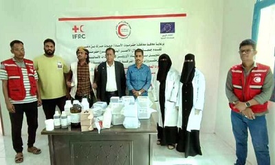 جمعية الهلال الأحمر اليمني حضرموت تسلم مواد مخبرية خاصة بفحص جودة المياه للمؤسسة المحلية للمياه والصرف الصحي بساحل حضرموت