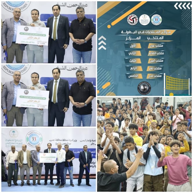 بحضور معالي وزير الشباب والرياضة نايف صالح البكري، ووزير التربية والتعليم د. عادل عبدالمجيد العبادي، توّج منتخب عدن ببطولة البرنامج السعودي لتنمية وإعمار اليمن لمنتخبات المحافظات في الكرة الطائرة، التي اختتمت منافساتها مساء اليوم الخميس في الصالة الرياضية المغلقة بالعاصمة المؤقتة عدن، بمشاركة خمسة منتخبات.