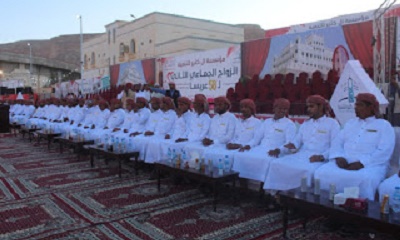 وجاء العرس الجماعي بحضور السلطة المحلية بوادي حضرموت ممثلة بوكيل المحافظة لشئون الوادي والصحراء الأستاذ عصام جبريش الكثيري ووكلاءه المساعدين الوكيل المساعد المهندس هشام محمد السعيدي والوكيل المساعد الأستاذ عبد الهادي التميمي ومشائخ وأعيان قبائل وادي حضرموت .