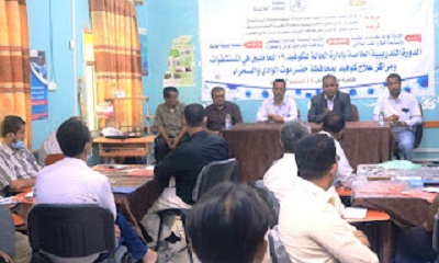 وكان منسق الطوارئ بمنظمة الصحة العالمية بالوادي والصحراء الدكتور / غازي باشامخة اعطى صورة موجزة عن الدورة التي تهدف بالتعريف بالحميات وامراض الجهاز التنفسي الفيروسية ( كوفيد – 19 ، سارس ، الضنك ، وبقية الحميات ) . حضر حفل الافتتاح نائب مدير عام مكتب وزارة الصحة للشئون الادارية والتخطيط الدكتور / صالح باعويضين منسق الدورة ونائب مدير عام مكتب الصحة لشئون المديريات الصحراوية / خالد عبدالله العامري ومدربي الدورة .