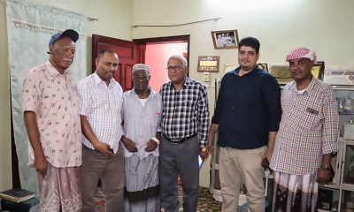 مديرو عام الثقافة والصحة بمعيهم مدير عام مديرية المكلا يتفقدون الحالة الصحية للفنان كنداره