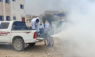 والسكان بالمديرية إختتمت بوادي يبعث محافظة حضرموت حملة الرش الضبابي