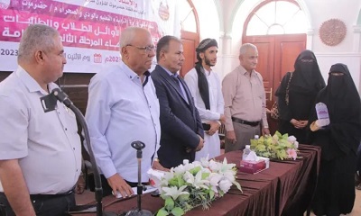 وجرى خلال الحفل الذي نظمة مكتب التربية والتعليم برعاية من السلطة المحلية تكريم الطالبة جنى مانع التميمي الحاصلة على المركز الأول بوادي وصحراء حضرموت القسم العلمي من ثانوية حكمه بنسبة 99.75% والطالبة نسرين يحيى الأهدل الحاصلة على المركز الاول بوادي وصحراء حضرموت القسم الأدبي من ثانوية باكثير للبنات بسيئون بنسبة 98.88%.
