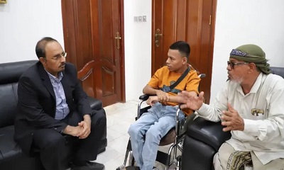 وأشاد المحافظ بالهمّة العالية للشاب علي سعيد بن الشيبة “23 عامًا” واهتمامه بالعلم ومواصلة تعليمه حتى نيله شهادة الثانوية العامة وحصوله على شهادة الدبلوم لغة انجليزية، والتحضير لمواصلة دراسته الجامعية ونيل شهادة التوفل.