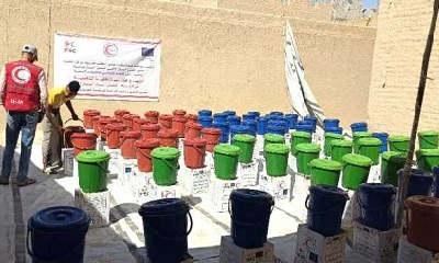 قامت جمعية الهلال الاحمر اليمني فرع حضرموت بتوزيع 300 حقيبة نظافة شخصية
