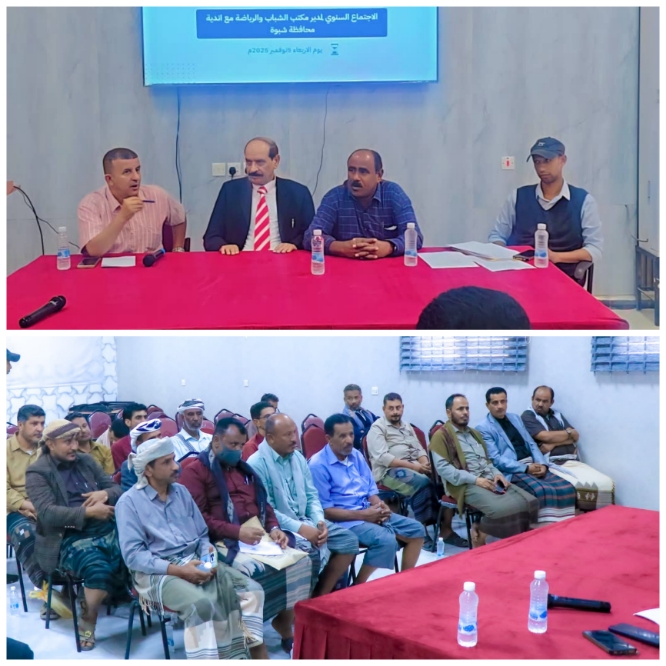 برعاية المحافظ بن الوزير : مكتب الشباب بشبوة يعقد الاجتماع السنوي للأندية الرياضية ويعلن انطلاق الأولمبياد الرياضي بالمحافظة