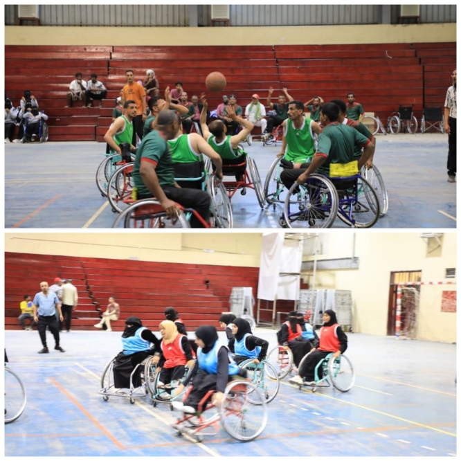 تواصل منافسات البطولة الوطنية الأولى لكرة السلة للكراسي المتحركة لذوي الإعاقة بعدن