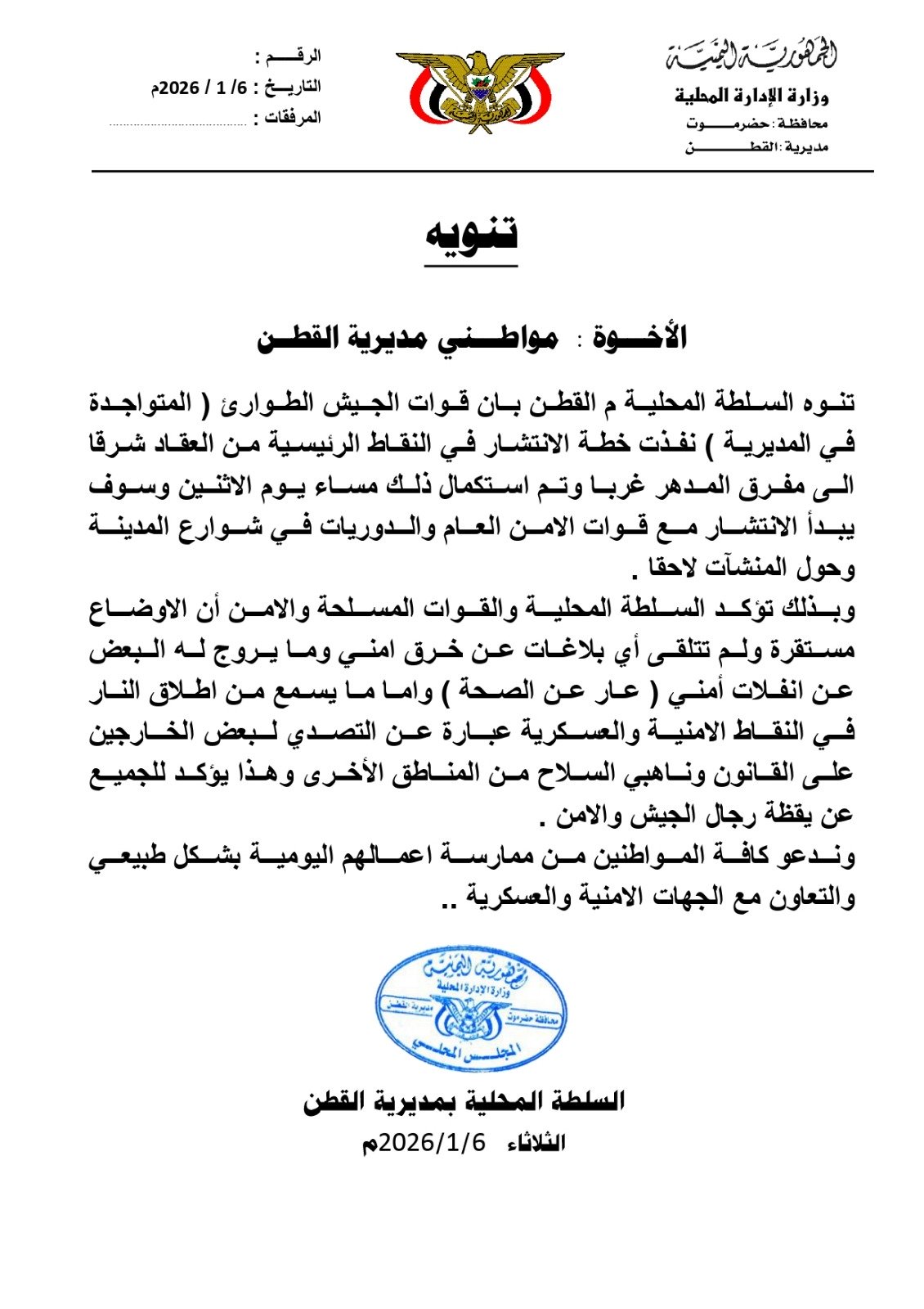 و من جانبه تحدث اركان قوات المهام بأن القوات مستمرة في تنفيذ الخطط العسكرية و الأمنية بالمديرية بالتنسيق مع الامن العام للحفاظ على الامن و الاستقرار داخلها و تأمين المواطنين حتى تعم السكينة في مناطق المديرية.