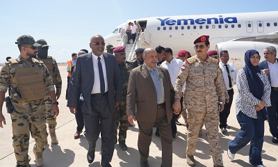 اليوم، في مطار الريان الدولي بمدينة المكلا، وفدًا حكوميًا رفيع المستوى