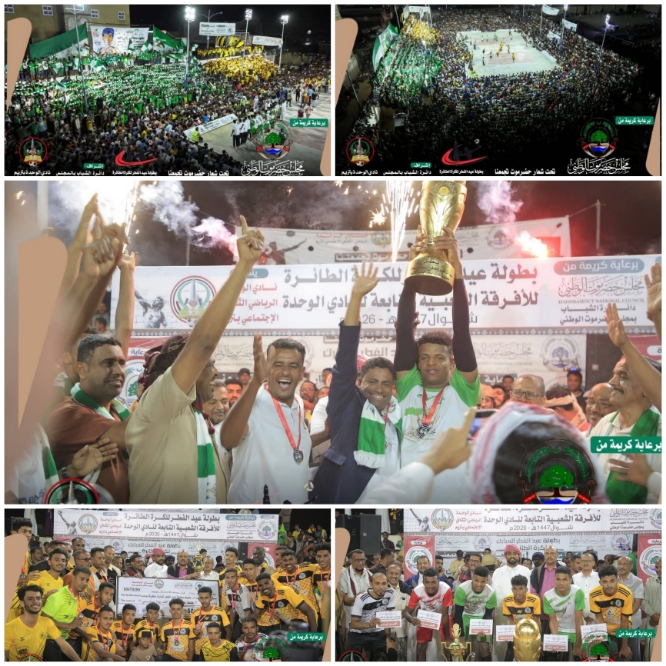 في ليلة رياضية إستثنائية، أسدل الستار مساء الخميس 14 شوال على منافسات بطولة عيد الفطر المبارك للكرة الطائرة 2026م، والتي أُقيمت برعاية مجلس حضرموت الوطني، تحت شعار "حضرموت تجمعنا"، وبإشراف دائرة الشباب بالمجلس الوطني وتنظيم نادي الوحدة الرياضي بتريم، وسط حضور جماهيري غفير وأجواء حماسية جسّدت عشق اللعبة في مدينة تريم المواجهة النهائية التي جمعت التحالف بالمحيضرة وشباب حصن عوض والرميلة، جاءت على قدر التطلعات، حيث قدّم الفريقان واحدة من أجمل مباريات البطولة، اتسمت بالإثارة والندية حتى اللحظات الأخيرة.