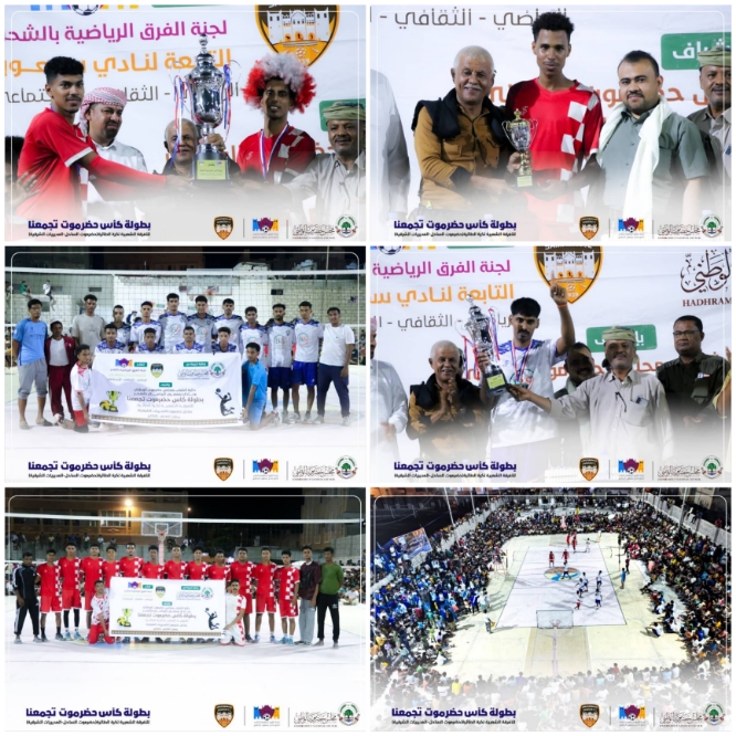 في ليلة رياضية مميزة اتسمت بالإثارة والحماس، اختُتمت مساء السبت 4 أبريل 2026م على ملعب كرة الطائرة بمنشأة نادي سمعون بمدينة الشحر منافسات بطولة كأس حضرموت تجمعنا لكرة الطائرة للفرق الشعبية بالمديريات الشرقية (ساحل حضرموت)، والتي نظمتها لجنة الفرق الرياضية الشعبية بالشحر، برعاية كريمة من مجلس حضرموت الوطني، وبإشراف دائرة الشباب بالمجلس ونادي سمعون الرياضي.
