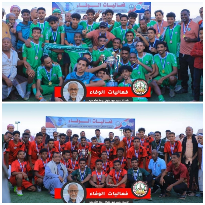 في مشهد ختامي مهيب، أسدل الستار عصر اليوم الجمعة 17 أبريل على بطولة الوفاء الرباعية لكرة القدم للفقيد عبيد عبود عليان – رحمه الله – التي أُقيمت برعاية الأستاذ سالم أحمد الخنبشي عضو مجلس القيادة الرئاسي محافظ محافظة حضرموت، والأستاذ جمعان سالمين بارباع وكيل المحافظة لشؤون الوادي والصحراء، وتنظيم نادي الوحدة الرياضي بتريم، وسط حضور رسمي ورياضي وجماهيري كبير عكس قيمة المناسبة وعمق الوفاء للفقيد.