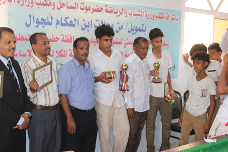 بحضور الأخوة / محسن العطاس مدير مكتب الشباب والرياضة و حسين باربود مدير مدرسة المعارف الحديثة وسعيد أحمد العماري مدير مدرسة 14 اكتوبر وعدد من المعلمين والمشرفين للبطولة وخاض اللاعبين بادخن وباسويد خمس مباريات دهاب واياب اسفرت بفور سالم بادخن مدرسة 14 اكتوبر المركز الأول وعلي باسويد مدرسة عثمان بن عفان المركز الثاني وطاقم تحكيم من الأخوة / عبدالعزيز عفيف ومحمد الجفري ومراقب المباراة الأخ نايف باشراحيل الامين العام لاتحاد البلياردو وفي ختام البطولة قام مدير مكتب الشباب والرياضة ورئيس فرع الاتحاد صلاح باسندوة ومدير مدرسة المعارف المستضيف للبطولة بتكريم المركز الأول البطل والمركز الثاني الوصيف وتسليمهم كاسات البطولة والجوائز العينية والهدايا التذكارية المقدمة من محلات إبن العكام للجولات وكدا تكريم المدارس المشارك بالبطولة بشهادات تقديرية.