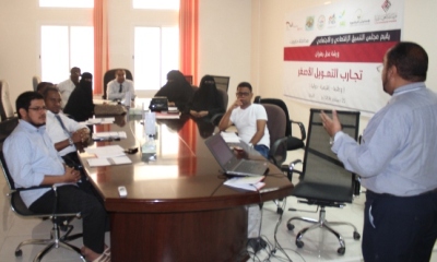 وكان الاستشاري المهندس فؤاد البعوض استعرض في الورشة مقدمة عن التصور لتجارب التمويل الاصغر وتجربة وطنية عن برنامج حضرموت للتمويل الاصغر وأخرى اقليمية عن تجربة المؤسسة الفلسطينية للاقراض وتجربة دولية عن بنك الفقراء جرامين .