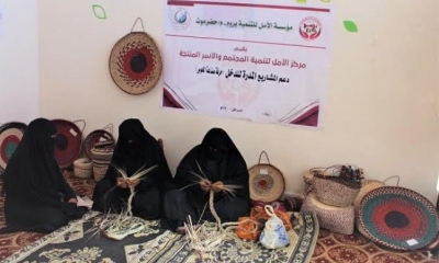 أسرتين في حرفة صناعة الخوص من المستفيدات من الدورة التدريبية التي نفذتها