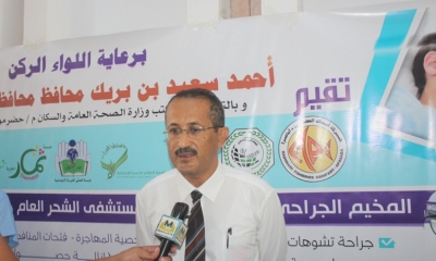 المخيم الجراحي التخصصي الذي دشنه الدكتور عوض باحنحن نائب مدير العام مكتب الصحة العامة والسكان بساحل حضرموت والمهندس أمين سعيد بارزيق المدير العام لمديرية الشحر ونائبه الأستاذ مصبح العبد البحسني والدكتور عبد المنعم سعيدان مدير مكتب الصحة بالمديرية والعميد سعيد الشعملي قائد لواء الأحقاف وممثلي ومندوبي الجهات الداعمة والممولة للمخيم أبرزهم الشيخ سعيد صالح العمقي رئيس مؤسسة العمقي الاجتماعية الخيرية والأستاذ صالح حسن البكري المدير التنفيذي لمؤسسة ثمار الخيرية والأستاذ رضي الحبشي نائب مدير شركة بروم للأسماك والمهندس عبد الله سعيد بامختار المدير التنفيذي لمؤسسة العمقي الخيرية الاجتماعية والأستاذ سعيد باقحوم المدير التنفيذي لمؤسسة السالم للتنمية الاجتماعية وعدد من مندوبي وممثلي الجهات الداعمة والممولة للمخيم .