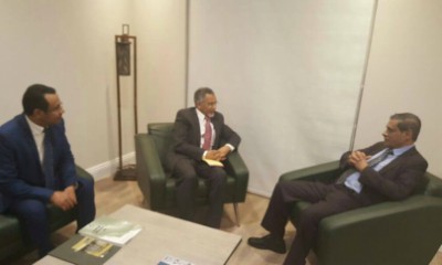 بحث محافظ حضرموت قائد المنطقة العسكرية الثانية اللواء الركن فرج سالمين البحسني خلال لقائه بالرياض محافظ البنك المركزي اليمني الدكتور محمد منصور زمام المسائل المالية المتعلقة بالمحافظة والسبل الكفيلة بايصال السيولة النقدية ومخصصات المحافظة .