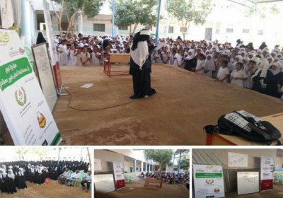 في الطابور الصباحي لمدرسة مريمة للبنات بسيئون تنوعت فقرات الطابور الصاحبي حيث قدمت الطالبات الطابور على شكل رواية مسرحية وأنشودة هدفت إلى التوعية بضرورة أحترام الأخرين في كل أمور الحياة والمتمثل في أحترام الوالدين والمعلمين واحترام مشاعر ذوي الإعاقة واحترام عامل النظافة.