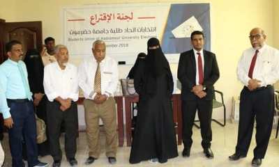 من جهته قال الأخ / أحمد عوض باجبير رئيس الاتحاد العام لطلبة جامعة حضرموت أن اليوم دشنت العملية الانتخابية للمرحلة الأولى للمجالس الطلابية التي ستشمل 13 كلية بالجامعة مشيراً إلى أن هذه الانتخابات تتميز بالتنافس الشريف بين الطلاب المرشحين للمجالس الطلابية بالكليات عبر صناديق الاقتراع السرية معبراً عن شكر وتقدير الهيئة الادارية لاتحاد طلبة الجامعة لعمادات الكليات وقيادة الجامعة ومكتب الشئون الاجتماعية والعمل على تسهيل كافة اجراءات الانتخابات الطلابية من أجل تشكيل قيادة جديدة للمجالس الطلابية والاتحاد العام لطلبة الجامعة متمنياً بان تكون نتائجها طيبة ومشرفة لما من شأنه خدمة الكيان الطلابي بجامعة حضرموت .