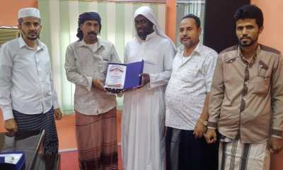 باعبود والقائمون عليه من لجنة المسجد بالمكلا صباح الأربعاء 24 رجب