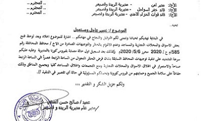 عاجل ومستعجل بعد ظهور أول حالة بفيروس كورونا بالمديرية وشدد على تنفيذ
